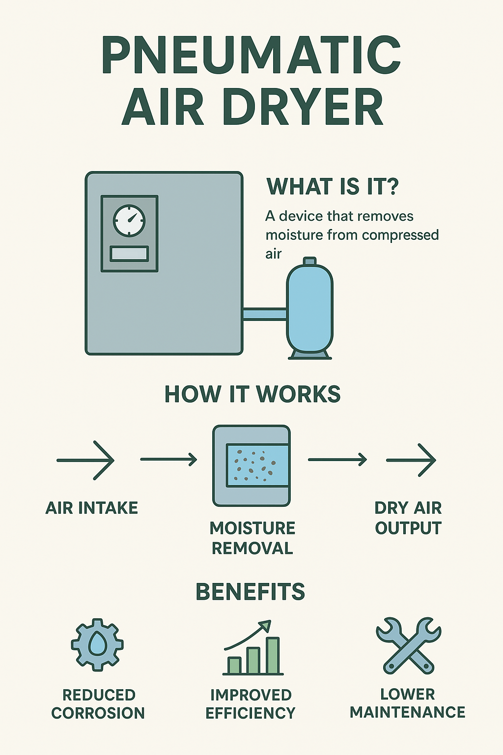 In any pneumatic system, clean and dry compressed air is essential for protecting equipment and ensuring reliable performance. Moisture, even in small amounts, can lead to corrosion, clogging, reduced efficiency, and costly downtime. That’s where a pneumatic air dryer becomes a crucial part of the system.