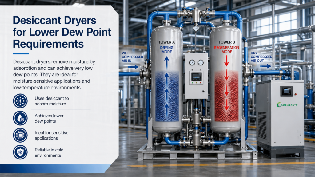 Desiccant dryers are commonly used in industries where moisture must be controlled more strictly, including pharmaceuticals, electronics, laboratories, precision instruments, and cold-climate installations.