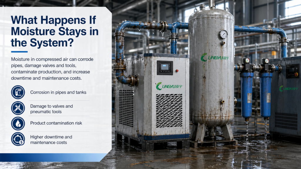 Moisture in compressed air may seem like a small issue at first, but in industrial applications it can create major operational risks.